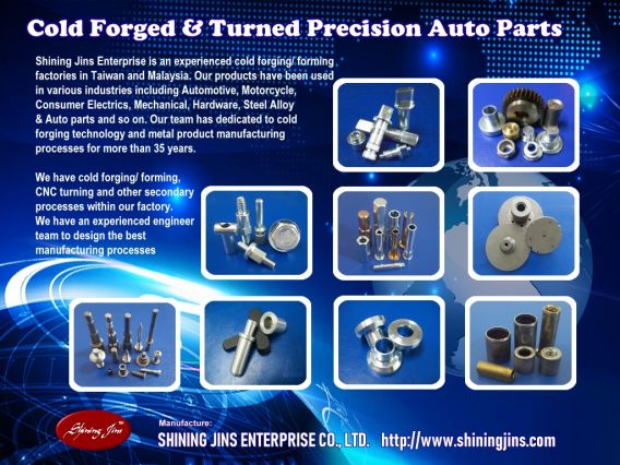 Shining Jins Enterprise Co., Ltd. engaged in manufacturing and supply precision forged and turned metal components to numerous markets in Taiwan.